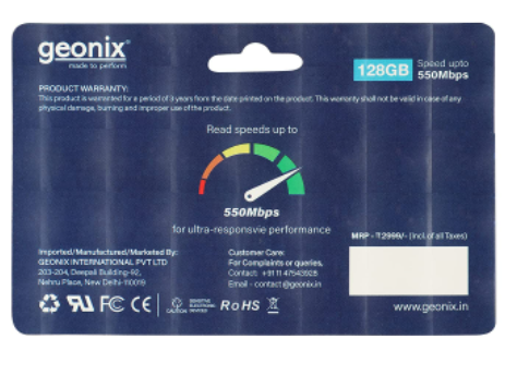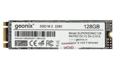 Original price was: ₹6,500.00.₹5,950.00Current price is: ₹5,950.00.Geonix Black 128GB SSD M.2 2280 SATA III (6Gb/s)|Read Speed Upto 550 Mbps | Internal Solid State Drive(SSD)| 3years Warranty