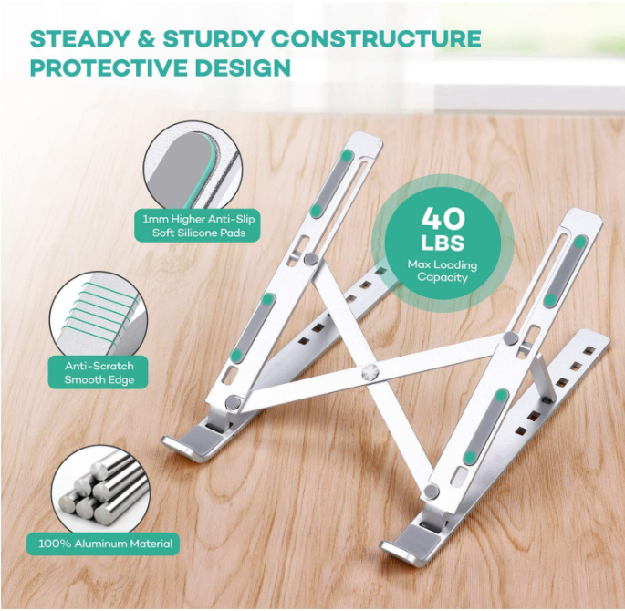 STRIFF Adjustable Laptop Stand Patented Riser Ventilated Portable Foldable Compatible with MacBook Notebook Tablet Tray Desk Table Book with Free Phone Stand(Black)