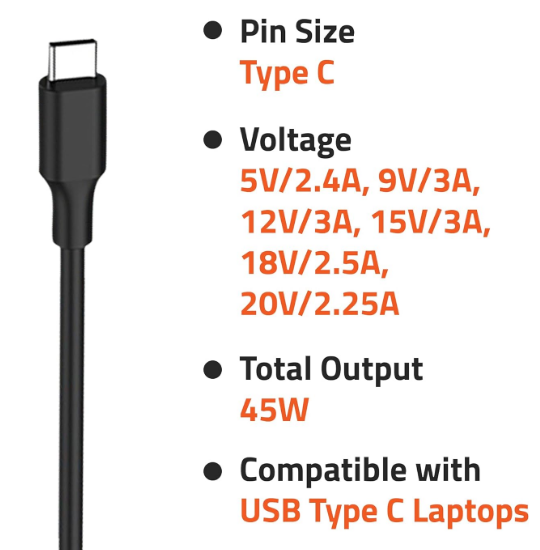 - In Box: 1 Techie 45W Type-C Universal Adapter and 1 power cord.